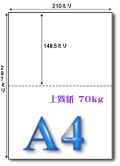 | 【国産上質70kg】(コピー用紙より少し厚め)を使用した、A4 マイクロミシン1本入り(2面)用紙です。 |